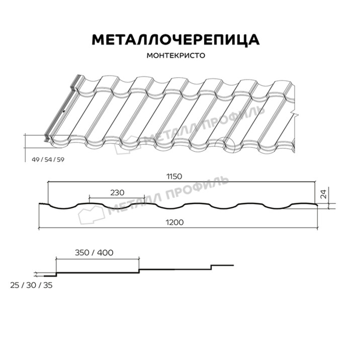 Металлочерепица Металл-Профиль Монтекристо-S 0,5 PURMAN® RAL 9005 Черный темный Показать информацию