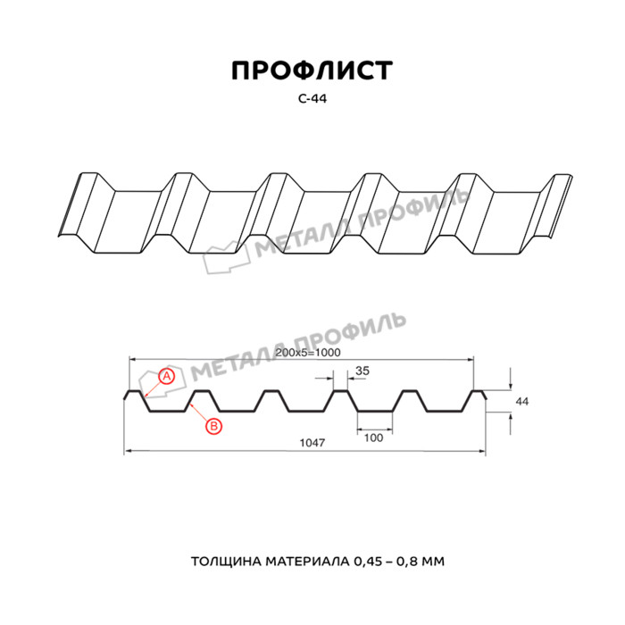 Профлист Металл Профиль С-44 0,5 PURMAN® RR 32 Темно-коричневый